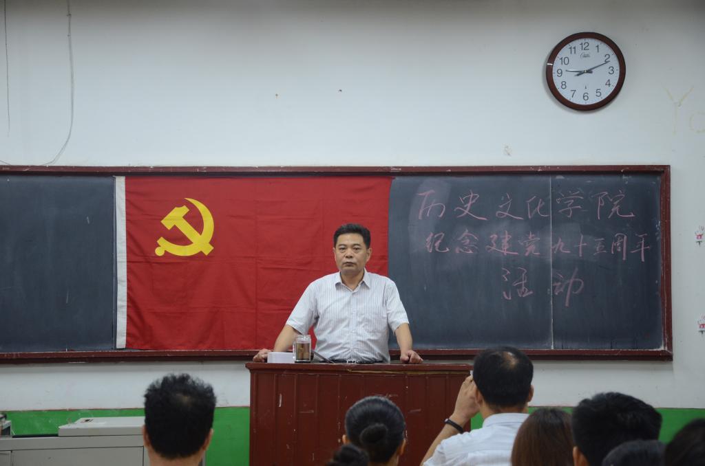 2016年7月1日上午九点,工口动漫 党委在文史楼102教室隆重举行庆祝建党九十五周年庆祝活动。党委书记尹明法、副书记王慕东,教工党支部、研究生党支部、学生党支部全体党员参加了此次活动。活动由学生党支部书记王建阳主持。