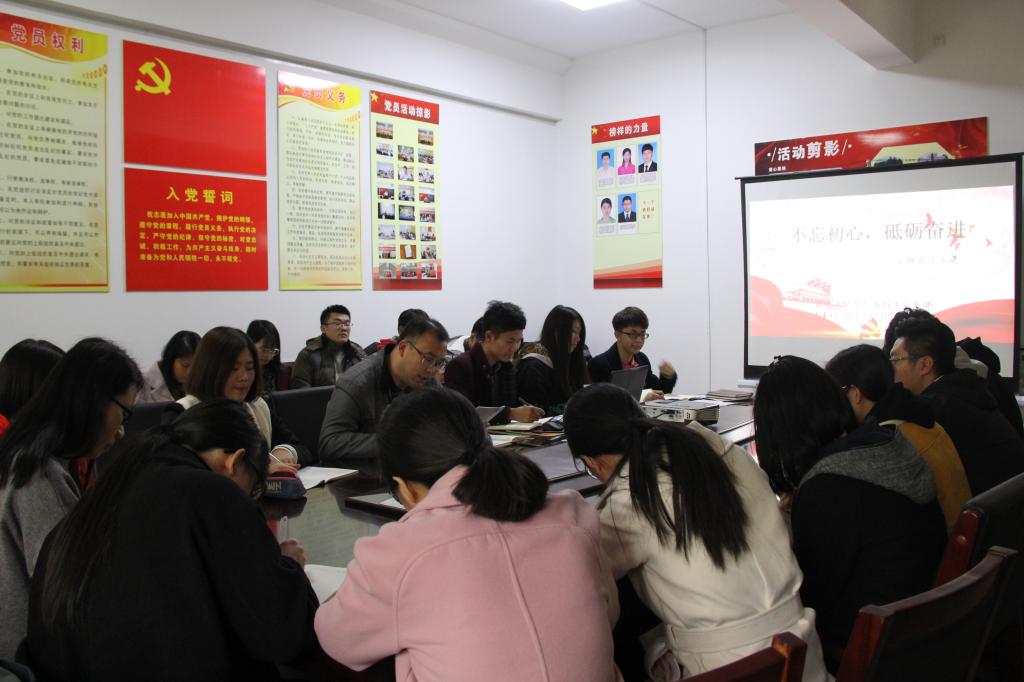 王建阳传达了学校党委关于《关于认真学习宣传贯彻党的十九大精神的通知》,支部副书记李成林带领大家学习了十九大报告,大家观看了《习近平为你描绘“新时代”》微视频,深刻领会了十九大精神和习近平新时代中国特色社会主义思想。