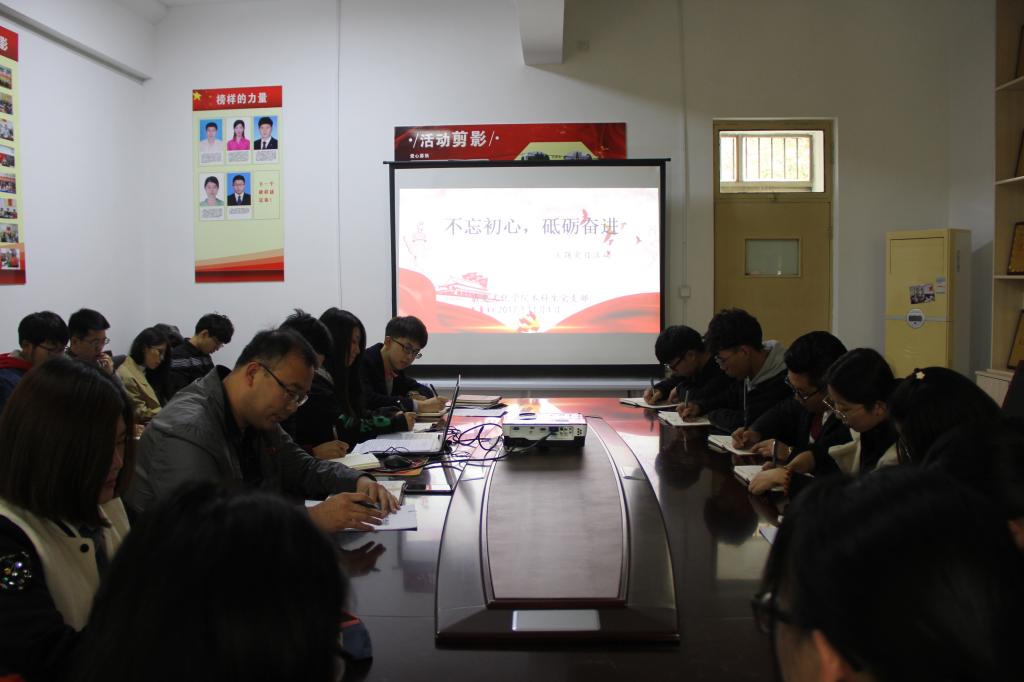 11月1日,工口动漫 本科生党支部举办“不忘初心,砥砺奋进”学习十九大精神主题党日活动。活动由本科生党支部书记王建阳主持。