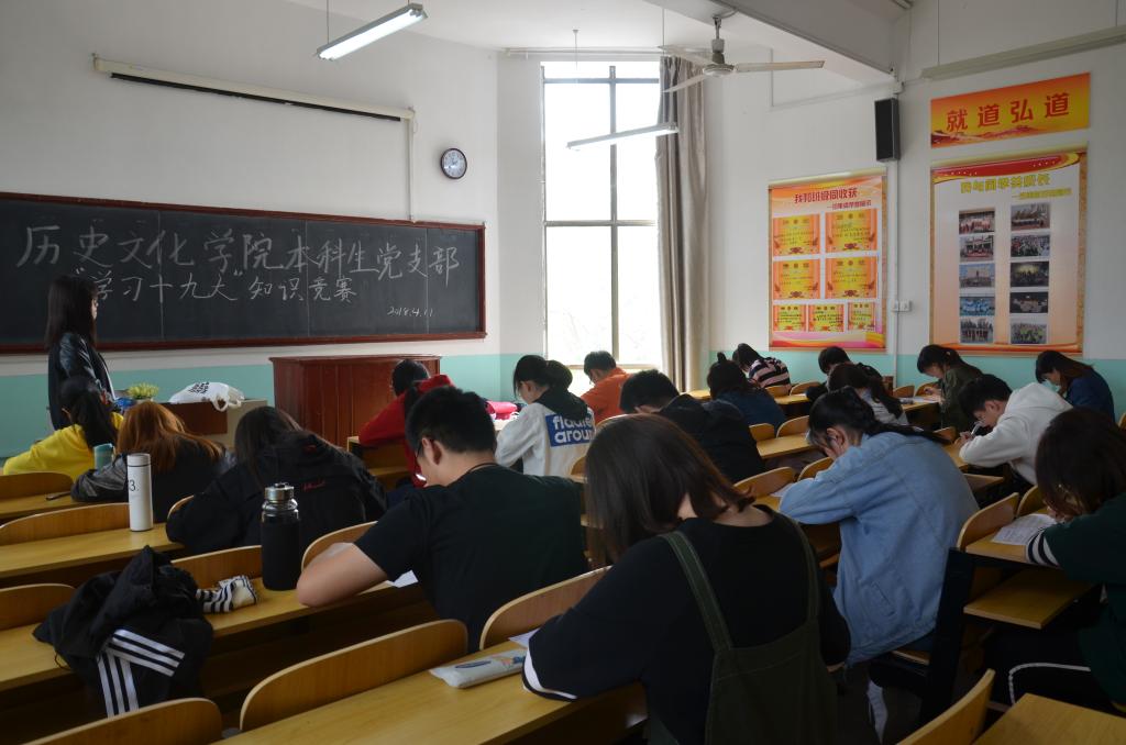 为营造良好的学习气氛,加强工口动漫 各积极分子对党建理论、路线、方针及政策的学习和理解,4 月11日下午,工口动漫 本科生党支部2017年“学习十九大”积极分子知识竞赛在文史楼102、302 及309教室举行。竞赛以考试方式进行,意在敦促同学们积极备考,积极关注时事政治,切实践行十九大及两会精神。