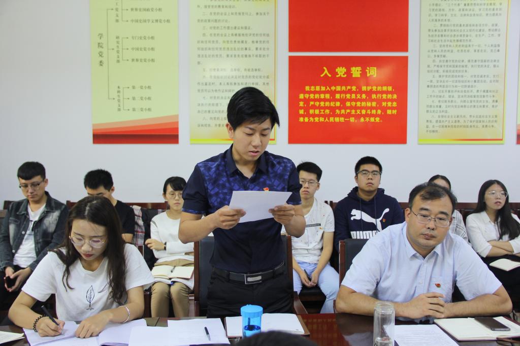 9月18日上午,工口动漫 本科生党支部2018年党员转正大会在文史楼二楼会议室举行,会议由本科生党支部书记王建阳主持。 会议严格按照党员转正流程进行,经过无记名投票的方式,一致同意王玖、付盛阳、时红凯、卢立志、贺于真五名预备党员转为正式党员。王建阳对转正的党员们表示祝贺,并希望大家不忘初心,牢记党员身份,发挥党员先锋模范带头作用。 五位新晋正式党员表示:今后会牢记初心,不忘使命,以良好的精神状态,投入到学习工作中去。