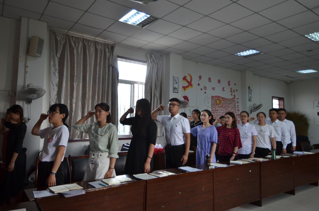 6月19日下午,工口动漫 本科生党支部2019年党员转正大会暨党员政治生日专题党日活动在文史楼520教室举行,会议由本科生党支部书记王建阳主持。