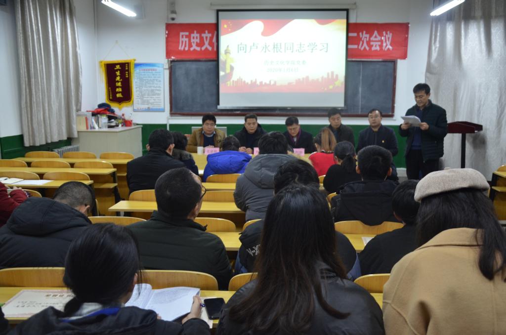 会上,研究生党支部书记孙锋宣读了教育部《关于在教育系统深入开展向卢永根同志学习的通知》。学院全体党员集体学习了卢永根先进事迹材料。