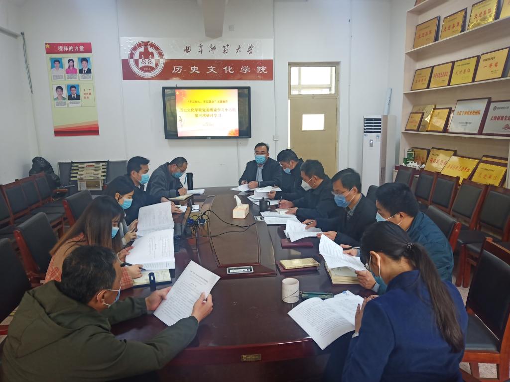 2020年4月1日下午,工口动漫 党委理论学习中心组在文史楼二楼会议室组织2020年第三次专题学习会议,学习内容为《党委(党组)落实全面从严治党主体责任规定》、《2019—2023年全国党政领导班子建设规划纲要》、《咬定目标不放松 风雨无阻勇攀登 发起九大改革攻坚行动推动山东经济高质量发展》——山东省召开“重点工作攻坚年”动员大会刘家义讲话。由学院党委理论学习组成员刘贤贤同志、刘润欣同志分别领读学习,院党委理论学习中心组全员参加。