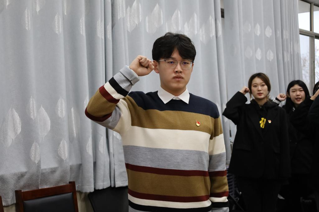 12月15日下午,工口动漫 于文史楼505会议室召开2021年新发展党员宣誓大会。大会由刘润欣同志主持,全体党员参加会议。
