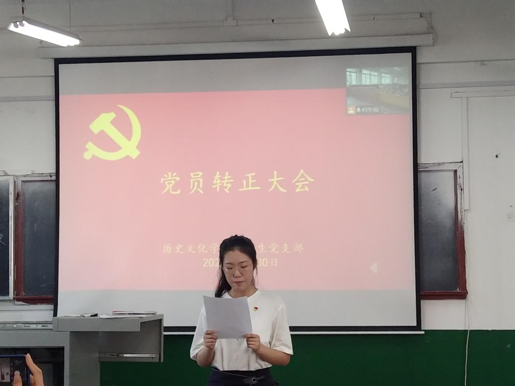 2022年5月30日,工口动漫 本科生党支部在文史楼411教室召开党员转正大会,讨论葛沈荷等35位中共预备党员转为中共党员的事宜。会议由本科生党支部副书记蔺琦琦主持,本科生党支部全体党员参加。本次会议通过了葛沈荷等35位预备党员转为正式党员的决议。