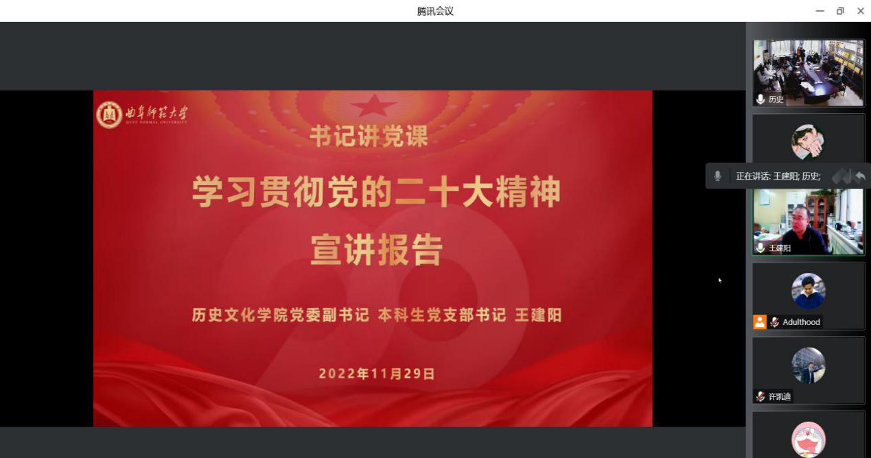 2022年11月29日下午,工口动漫 本科生党支部开展“书记讲党课”活动,本次活动采取线上线下相结合的方式,线下活动在文史楼204会举行,线上活动则以腾讯会议的形式进行。工口动漫 本科生党支部全体党员参加。