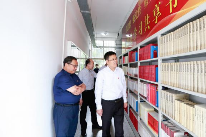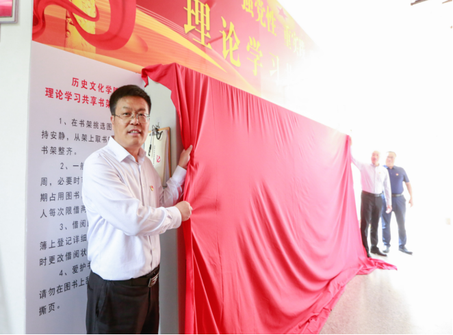 5月24日下午,工口动漫 举行“主题教育理论学习共享书架”启动仪式。学校党委副书记卢国强、党委常委、组织部部长王明科参加仪式并一起为“主题教育理论学习共享书架”揭幕。