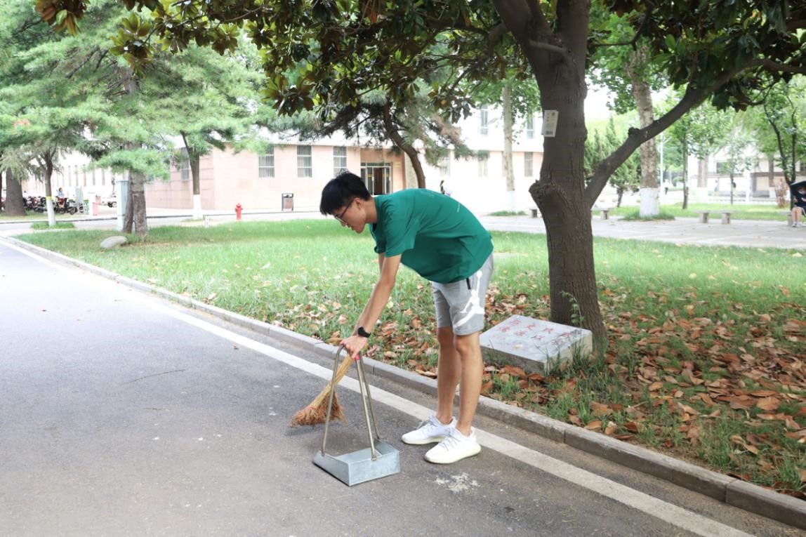 本次志愿服务的主题是为学院打扫卫生。毕业生党员同志们首先在系楼集合,任务分配完毕后,分发卫生工具。活动中,毕业生党员同志们主动地清扫落叶、捡拾垃圾、清理杂草,大家干劲十足,尽情展现“史院先锋”的模范带头作用。