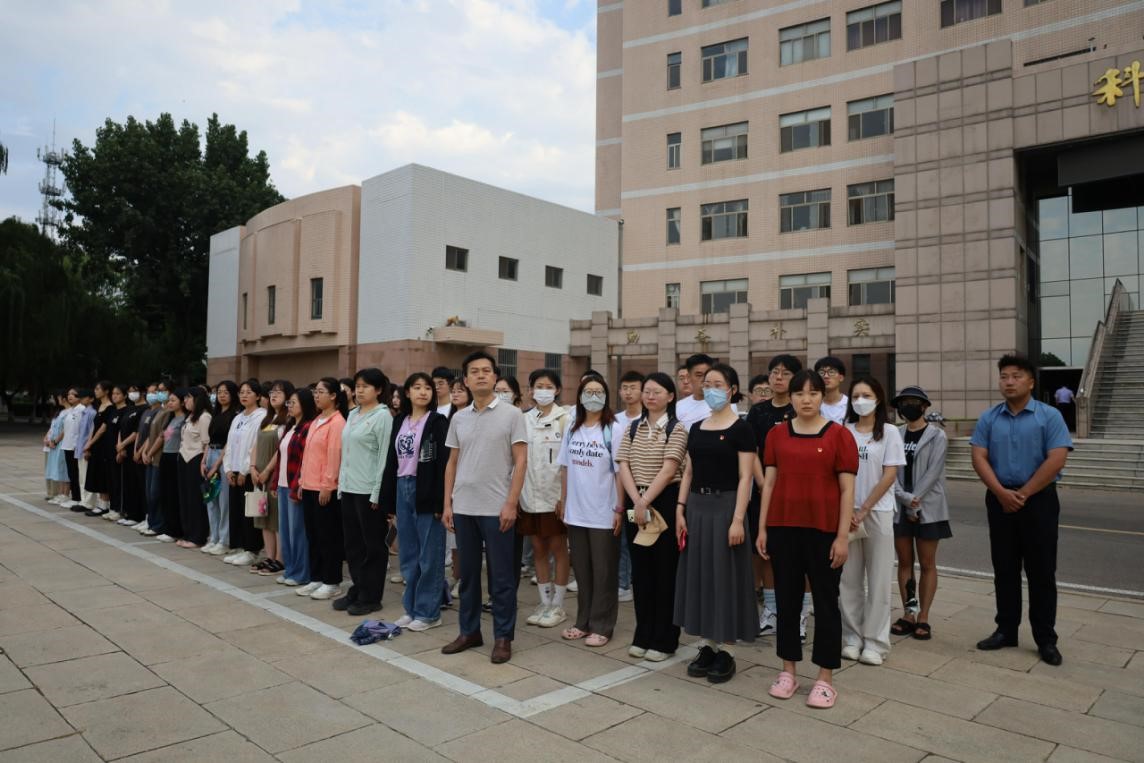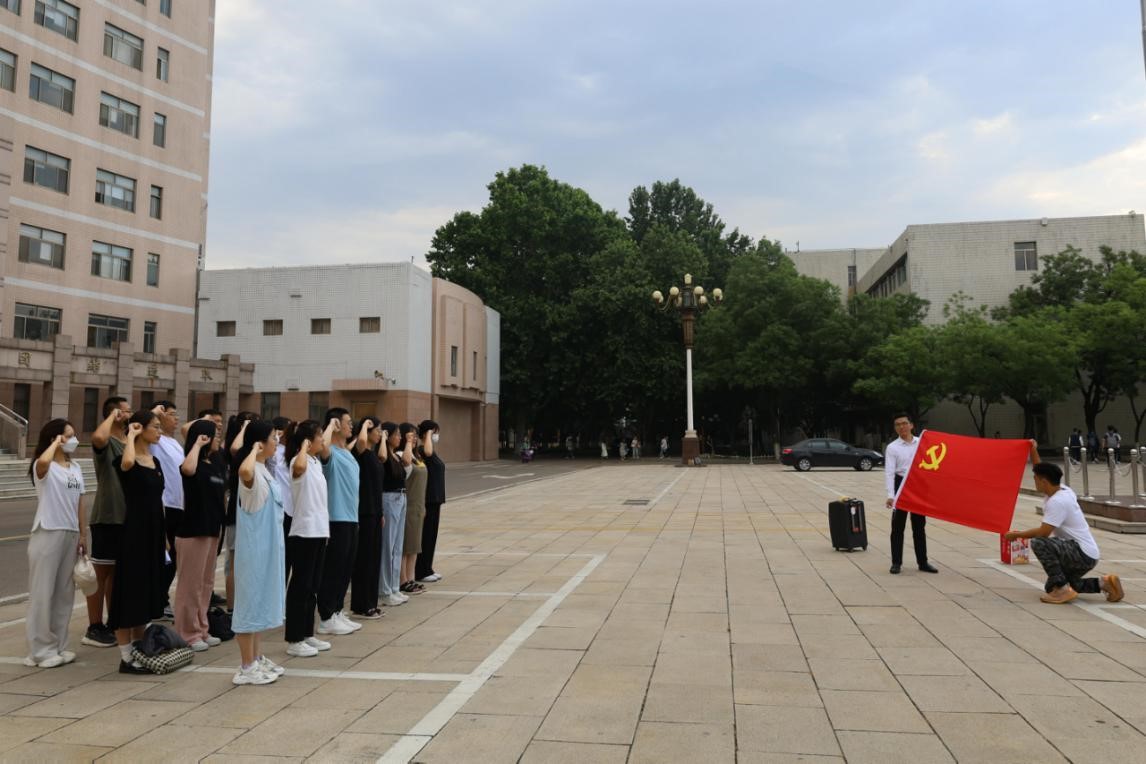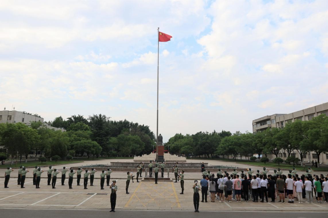 2023年6月12日上午,工口动漫 本科生党支部和研究生党支部于学校科技楼前开展重温入党誓词活动暨毕业生党员“七个一”系列活动——观看升旗仪式。本科生党支部和研究生党支部全体毕业生党员参加此次活动。