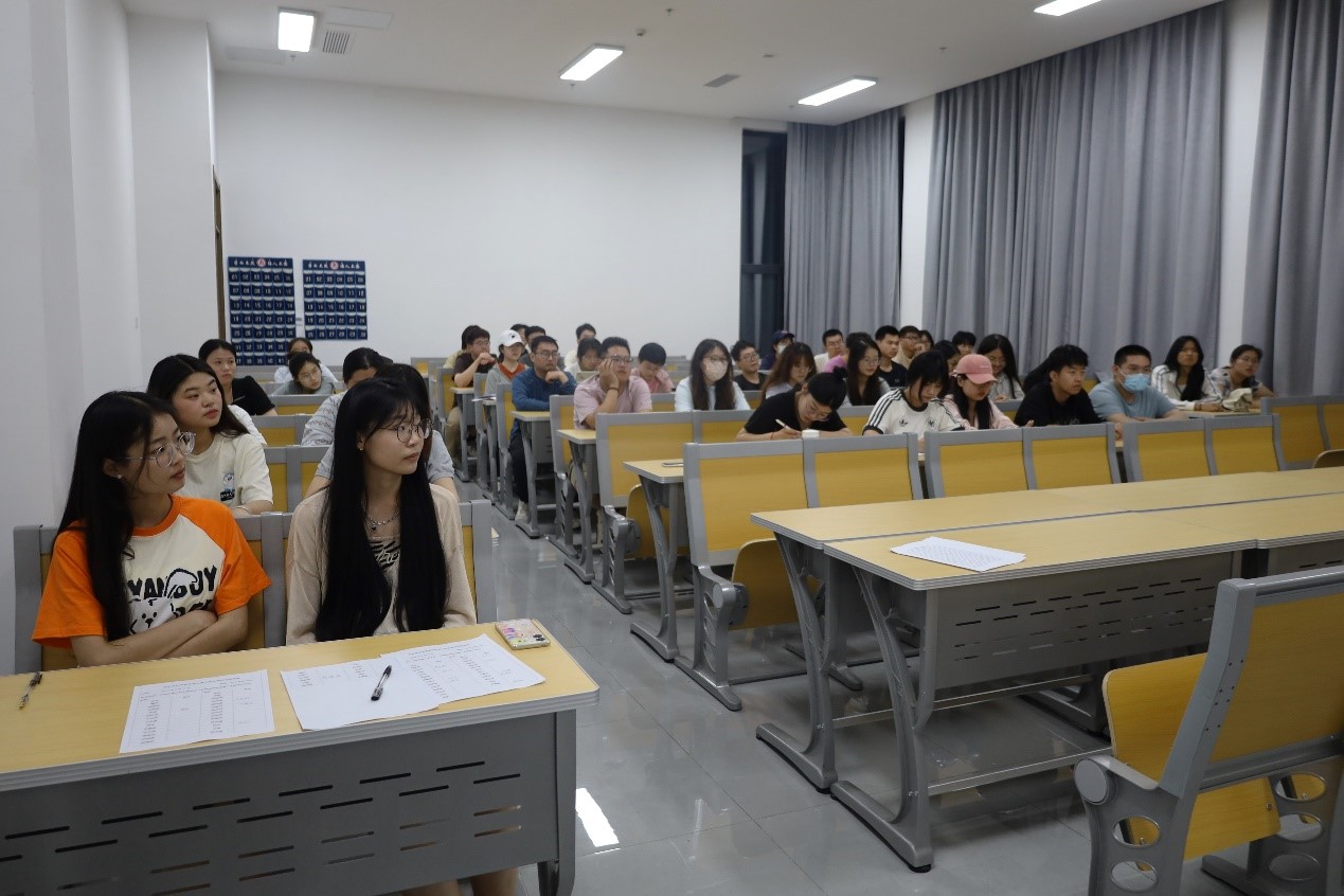 随后,兰鸽同志代表毕业生师哥师姐进行保研经验分享。向同学们传递保研相关信息,详细讲述保研方法路径。首先,兰鸽同志从保研过程入手,分本校政策与外校政策两个方面进行详细阐释。主要包括保研报名时间、保研资格获取、简历投放策等。接下来,兰鸽同志又向同学们讲解了推免的几个条件,以及推免对绩点、综测、竞赛、志愿服务活动等方面的要求。兰鸽同志讲解认真细致,同学们纷纷表示受益匪浅。