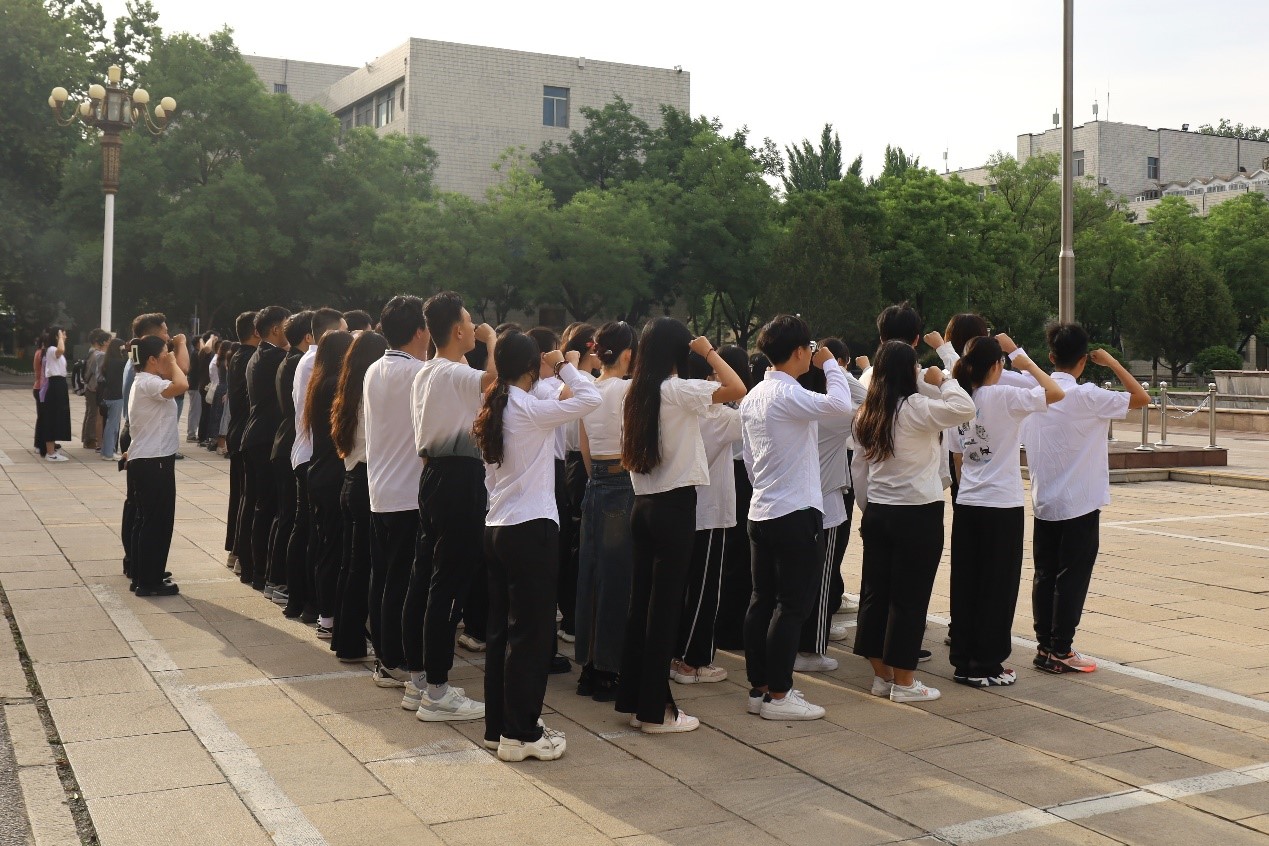 2024年5月27日上午,工口动漫 本科生第一、二、三党支部在孔子文化广场联合开展毕业生“七个一”系列活动—观看升旗仪式和重温入党誓词活动。本科生第一、二、三党支部全体毕业生党员参加本次活动。