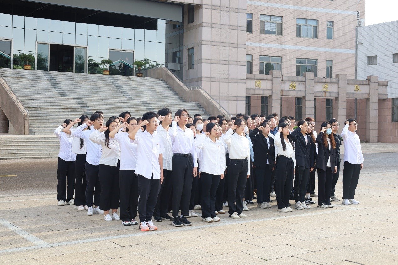 随后,由本科生第二党支部副书记兰鸽同志领誓,带领全体毕业生党员重温入党誓词。面对鲜艳的五星红旗,大家庄严宣誓:“我志愿加入中国共产党,拥护党的纲领,遵守党的章程……”。刚劲有力、掷地有声的誓词回荡在广场上,点燃每名党员心中爱党、忠诚、奉献之情,激励大家牢记党的宗旨,坚定理想信念,忠实履行义务。
