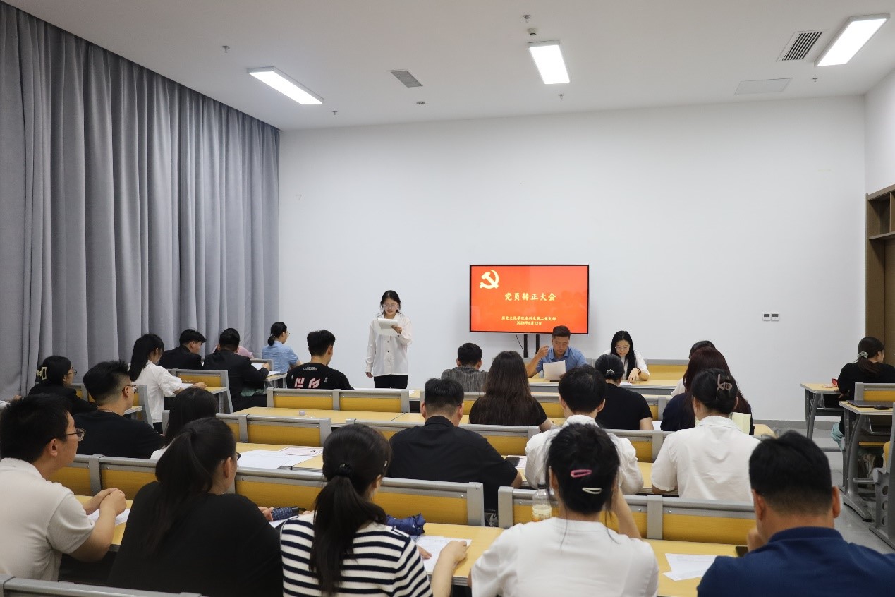 随后,由本科生第二党支部书记刘贤贤同志介绍田苇萍等6位同志的基本情况,报告与会人数,介绍会议流程,并宣布转正大会开始。田苇萍等6位同志依次宣读《转正申请书》,从思想、学习、生活、工作等方面,向党组织报告预备期间个人情况,表明入党动机和志愿加入中国共产党的决心。紧接着,各位考察联系人分别介绍田苇萍等6位同志在预备期间的表现并予以肯定,同意6位同志如期转为正式党员。