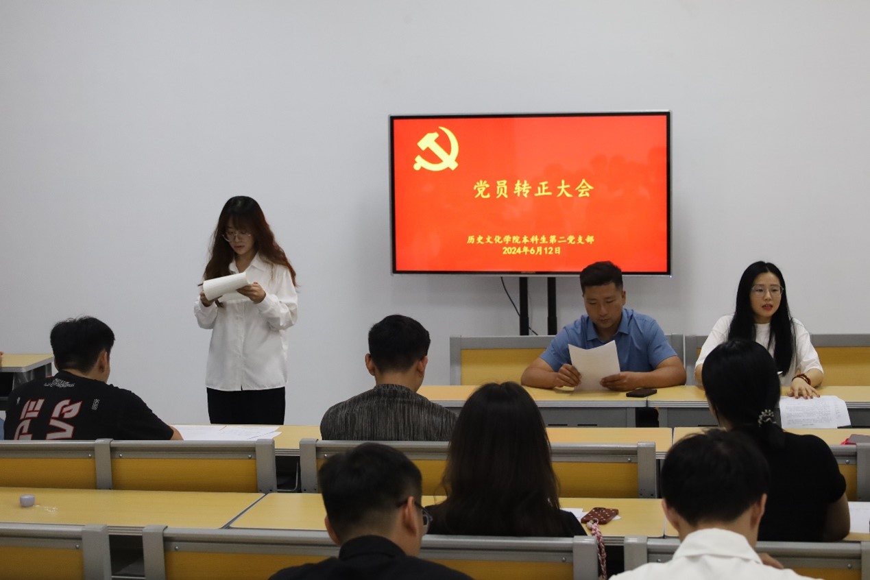 2024年6月12日,工口动漫 本科生第二党支部于孔子书院B106召开党员转正大会。本次大会由本科生第二党支部书记刘贤贤同志主持,本科生第二党支部全体党员参加。