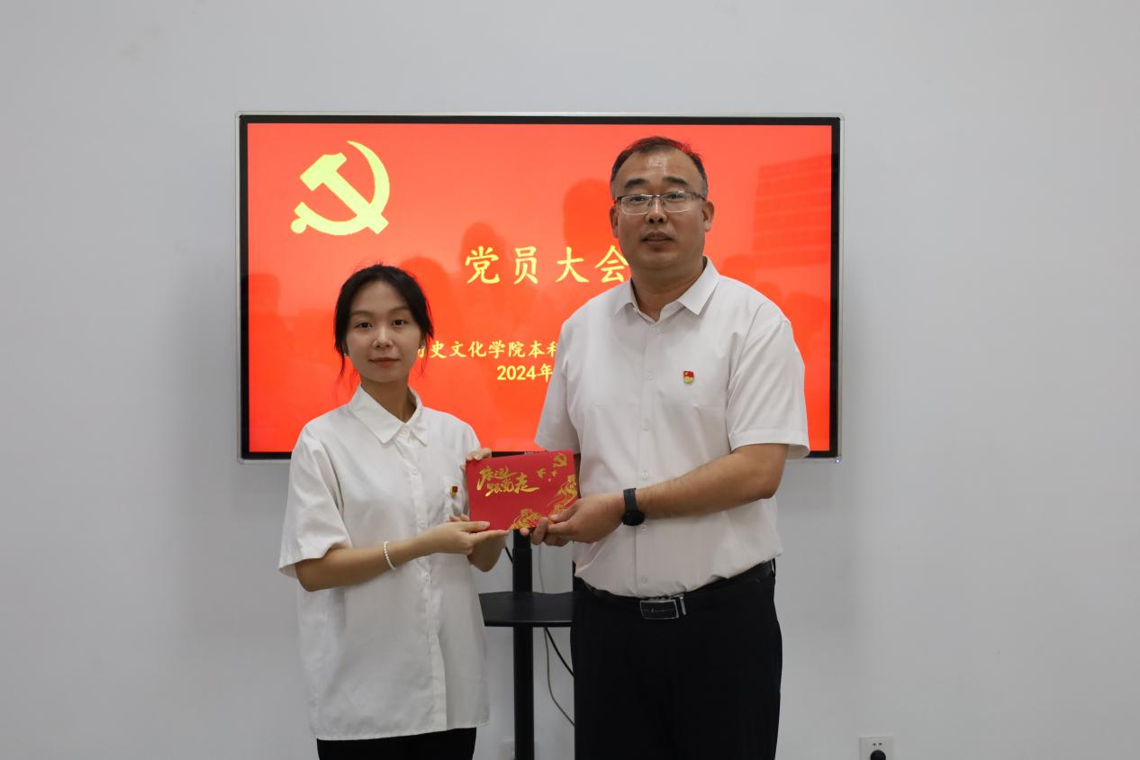 会上,王建阳对转正的党员同志表示热烈祝贺并颁发了政治生日贺卡。王建阳勉励同志们要珍惜共产党员身份,切实扛牢党员责任,继续发扬“优秀是一种习惯”的工作作风,继续发挥史院先锋的模范带头作用。