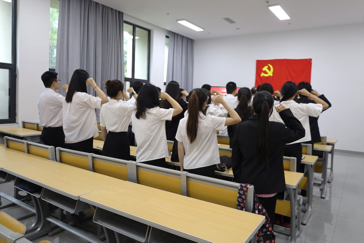大会在庄严的《国际歌》中拉开序幕,参会全体党员在领誓人程渝惠同志的带领下,面向党旗庄严宣誓,立志遵守党规党章,为共产主义奋斗终生。随后,研究生代表白惠同志和本科生代表刘易斯同志先后进行发言,表达了对党的忠诚和热爱,也号召大家共同为共产主义事业添砖加瓦。