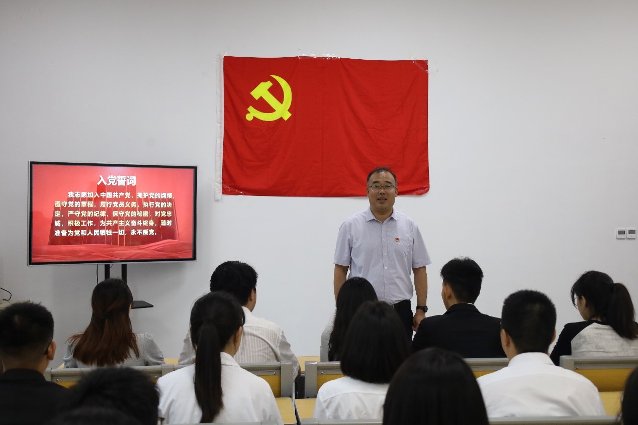7月1日,正值中国共产党成立103周年,工口动漫 本科生党支部与研究生党支部于孔子书院B106会议室举行预备党员集体宣誓仪式。工口动漫 党委副书记王建阳同志、研究生第一党支部书记孙峰同志、本科生第二党支部书记刘贤贤同志、本科生第一党支部副书记闫浩同志、本科生第三党支部书记董经同志出席会议,学院2024年新发展党员参加本次宣誓仪式。