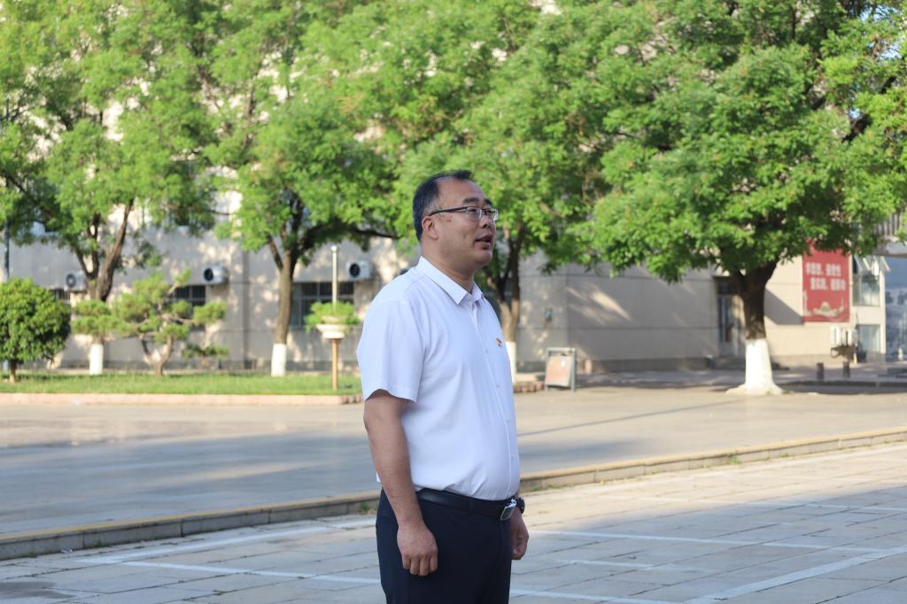 随着激昂的国歌奏响,五星红旗冉冉升起,全体党员庄严肃立,行注目礼,齐唱国歌,眼神中满是对祖国的热爱与忠诚。