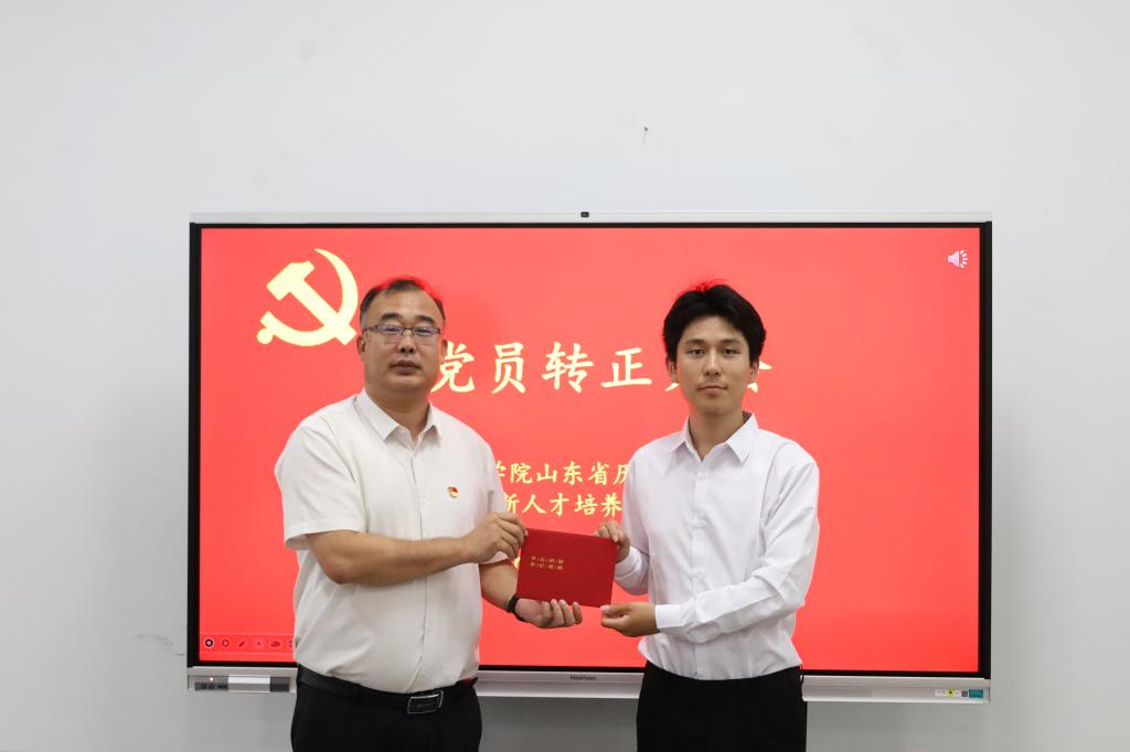 会上,王建阳为9位转正同志颁发了政治生日贺卡。王建阳勉励同志们要牢记党员身份,扛牢党员责任,继续坚持“优秀是一种习惯”的工作作风,在下一步的学习、工作和生活中充分发挥史院先锋的模范带头作用。