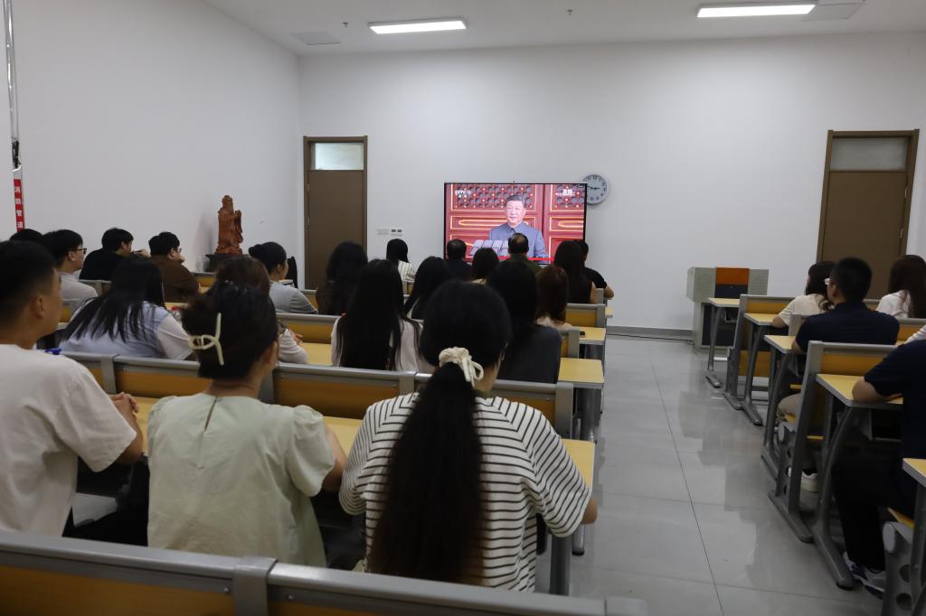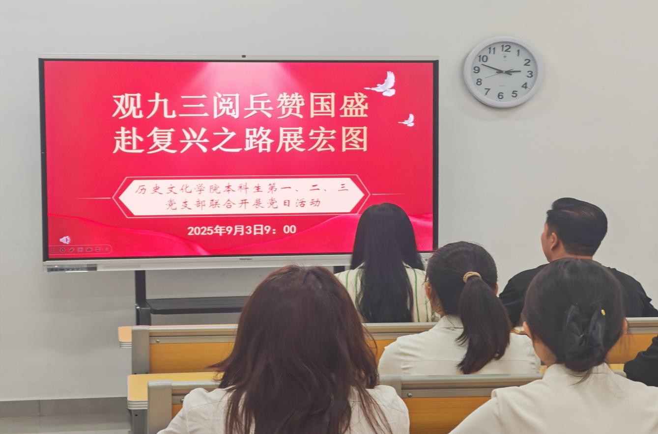 2025年9月3日,工口动漫 本科生党支部于孔子书院B120开展“观九三阅兵赞国盛,赴复兴之路展宏图”主题党日活动。活动由董经同志主持,工口动漫 本科生党支部全体党员参与。