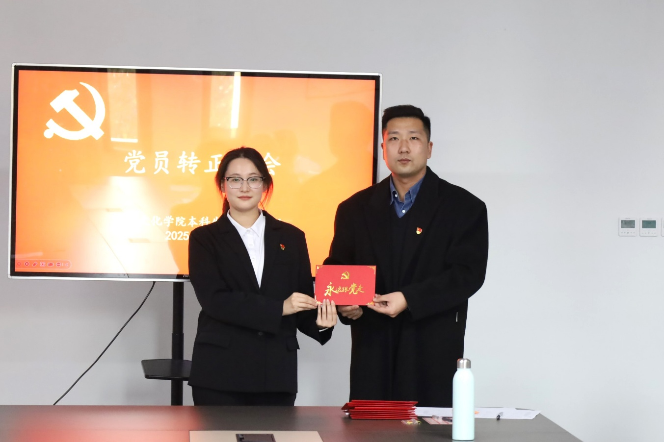 最后,董经同志代表支部大家表示热烈祝贺,为两位按期转正党员颁发政治生日贺卡,并进行总结发言。希望各位党员在新的起点上继续严格要求自己,用实际行动诠释对党的忠诚,牢记为人民服务的根本宗旨,以更加饱满的精神状态和更加坚定的理想信念,为实现中华民族伟大复兴贡献自己的智慧和力量。
