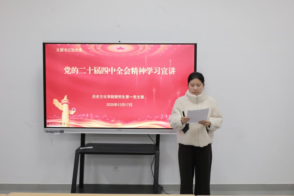 本次党课学习加深了同志们对党的第二十届中央委员会第四次全体会议精神的理解和认识,研究生党支部全体党员与入党积极分子将在今后的学习、生活和工作中切实加以贯彻落实,以实际行动践行精神内核,发挥史院先锋模范作用!