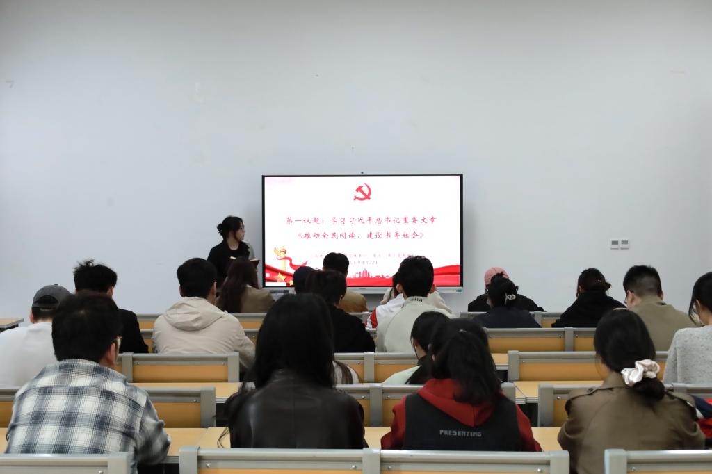 会议首先开展“第一议题”学习,由第二党支部邹雅琳领学2026年第8期《求是》杂志发表的习近平总书记的重要文章《推动全民阅读,建设书香社会》。文章指出,阅读是人类获取知识、启智增慧、培养道德的重要途径;共产党人要把读马克思主义经典、悟马克思主义原理当作一种生活习惯;要发扬“挤”和“钻”的精神;要建设全民终身学习的学习型社会、学习型大国,形成爱读书、读好书、善读书的浓厚氛围。