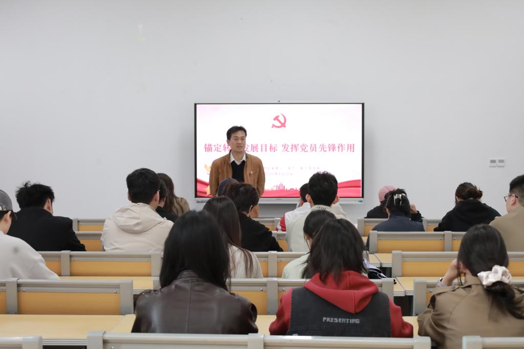 孙锋在总结发言中指出,学校提出要坚定走好“师范底色筑基、产教融合赋能”的特色发展道路,加速向高水平应用型大学转型,人文社会科学专业面临的挑战很大,全体党员同志要加强理论学习,以国家规划为导向,紧扣学校工作部署,在学习、科研、就业各方面早做谋划、多下功夫,充分发挥党员先锋模范作用。