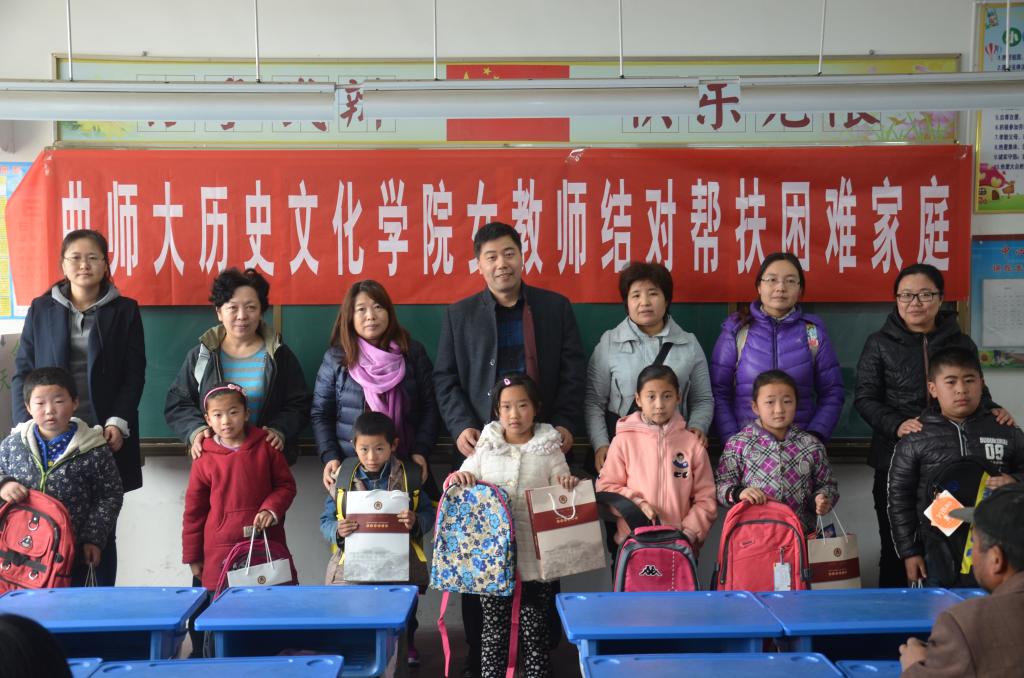 同时,工会主席吕厚轩带领15名女教师到杨营镇中心小学开展结对爱心帮扶活动。吕厚轩代表学院工会向中心小学捐赠了国学简明读本的相关教材及授课光盘;女教师们向家庭贫困的15名儿童捐赠了书包、文具等学习用品,与学生和学生家长进行了一对一深入交流,就孩子的学习、生活问题向家长提出意见建议,并互留联系方式,做好长期帮扶的准备。