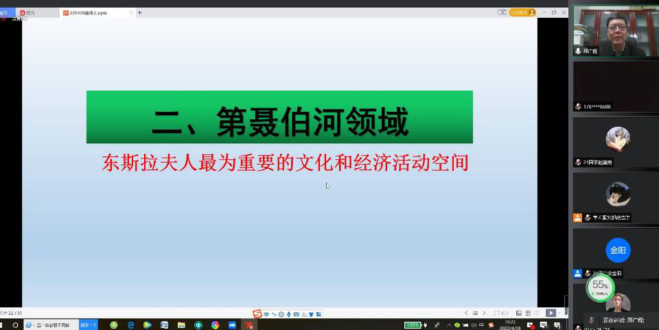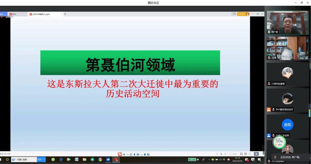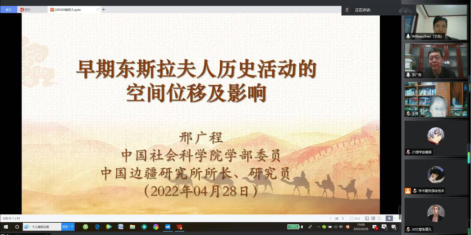 4月28日晚,中国社会科学院学部委员,中国社会科学院中国边疆研究所所长、研究员邢广程研究员作客“洙泗讲堂”,通过腾讯会议为工口动漫 师生作了题为《早期东斯拉夫人历史活动空间的位移及影响》的学术报告。讲座由赵文亮教授主持,北京师范大学张建华教授、我校特聘教授王玮先生担任评议人,学院相关专业师生及线上来自全国各地的听众共400余人参加了此次会议,会议内容十分精彩。