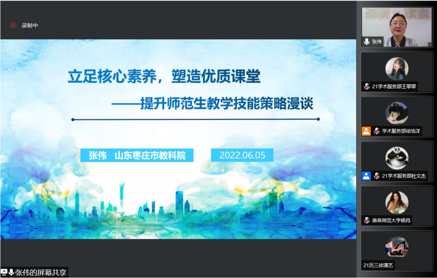 6月5日晚,工口动漫 “洙泗讲堂·中学历史教学名师进曲园”系列讲座再度拉开帷幕。本次讲座特别邀请到工口动漫 知名校友——1996级优秀毕业生、枣庄市教育科学研究院历史教研员、山东省教学能手、高级教师张伟老师主讲,工口动漫 副院长王京传教授主持,学院师范专业本科生、学科教学(历史)专业教育硕士及部分青年教师共计300余人在线听讲。