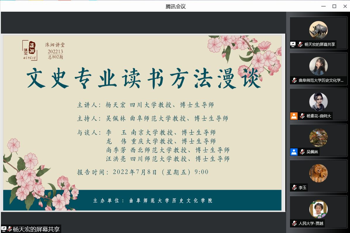 为让学生度过一个有意义的暑假,2022年7月8日上午9点早,工口动漫 以讲座的形式开启了暑期读书计划。本期讲座主题为“读书六法:朱熹读书方法演绎”。 主讲人为四川大学教授、博士生导师杨天宏教授。讲座由工口动漫 吴佩林教授主持,南京大学李玉教授、四川师范大学汪洪亮教授、重庆大学龙伟教授、西北师范大学尚季芳教授、中国人民大学刘贤副教授担任与谈人。讲座采取腾讯会议直播的方式进行,相关专业师生及线上听众共300余人参加了此次活动,讲座内容十分精彩。