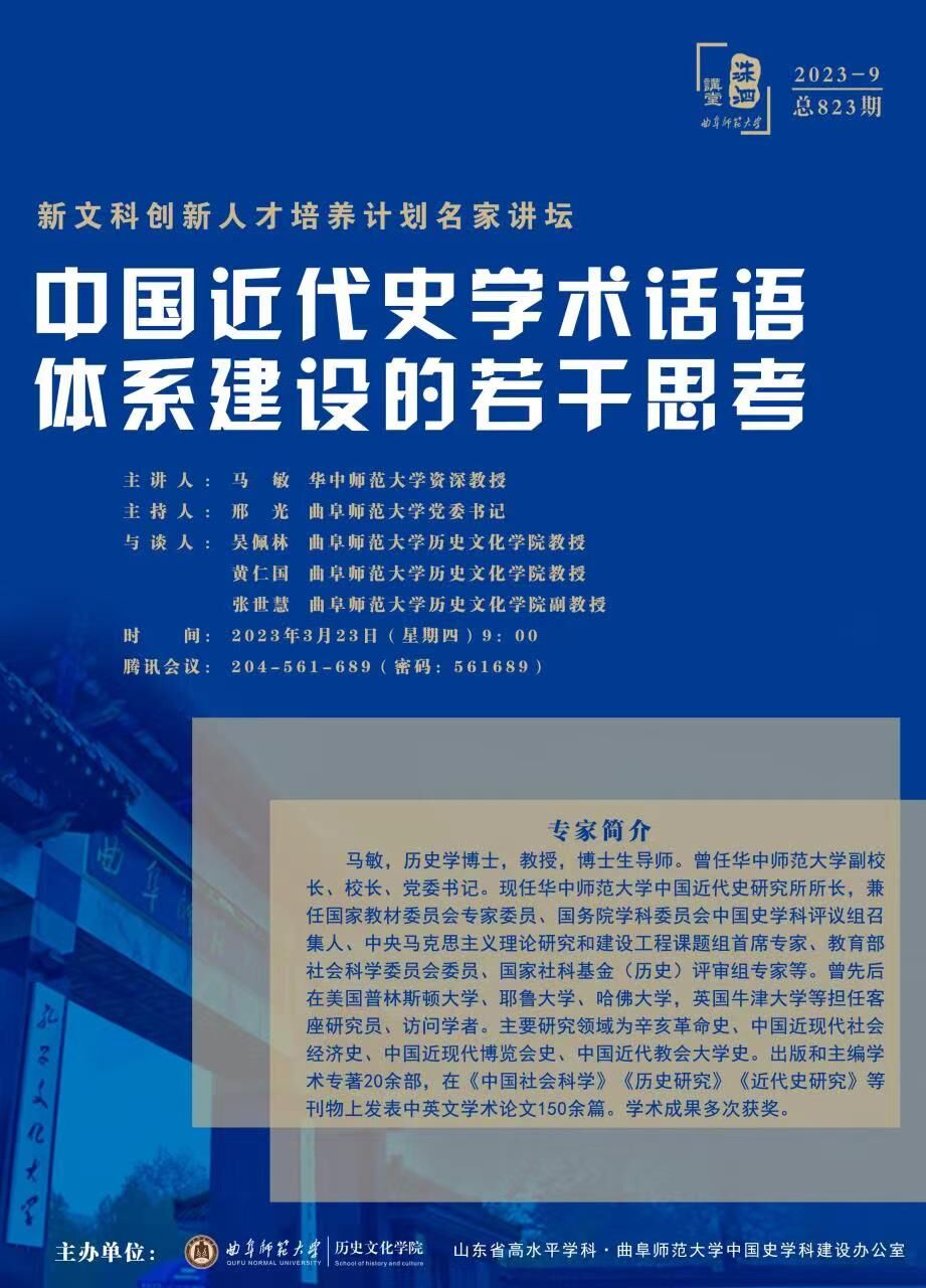 洙泗讲堂预告| 马敏:中国近代史学术话语体系建设的若干思考