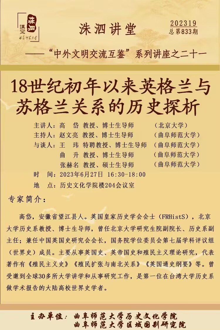 洙泗讲堂预告|高岱:18世纪初年以来英格兰与苏格兰关系的历史探析