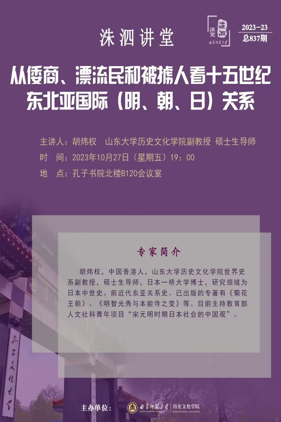 洙泗讲堂预告|胡炜权:从倭商、漂流民和被掳人看十五世纪东北亚国际(明、朝、日)关系