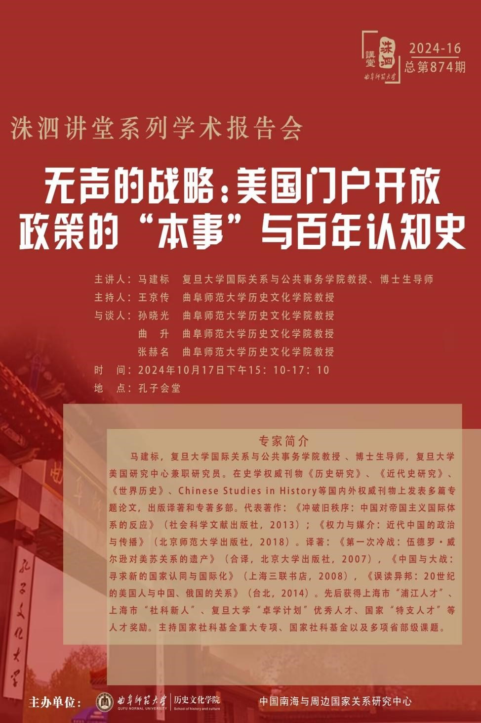 洙泗讲堂预告|马建标:无声的战略:美国门户开放政策的“本事”与百年认知史