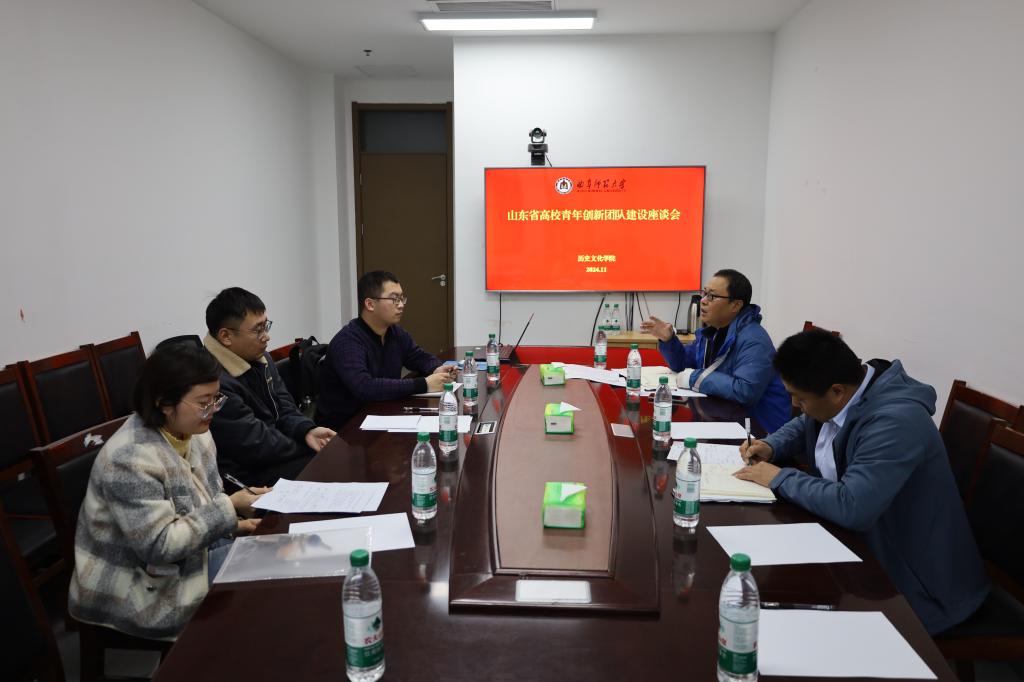 11月13日,工口动漫 在孔子书院B230会议室召开山东省高校青年创新团队建设座谈会。工口动漫 党委书记姜开勇、副院长(主持工作)王京传、青年教师张世慧、张文华、景凯东参会。