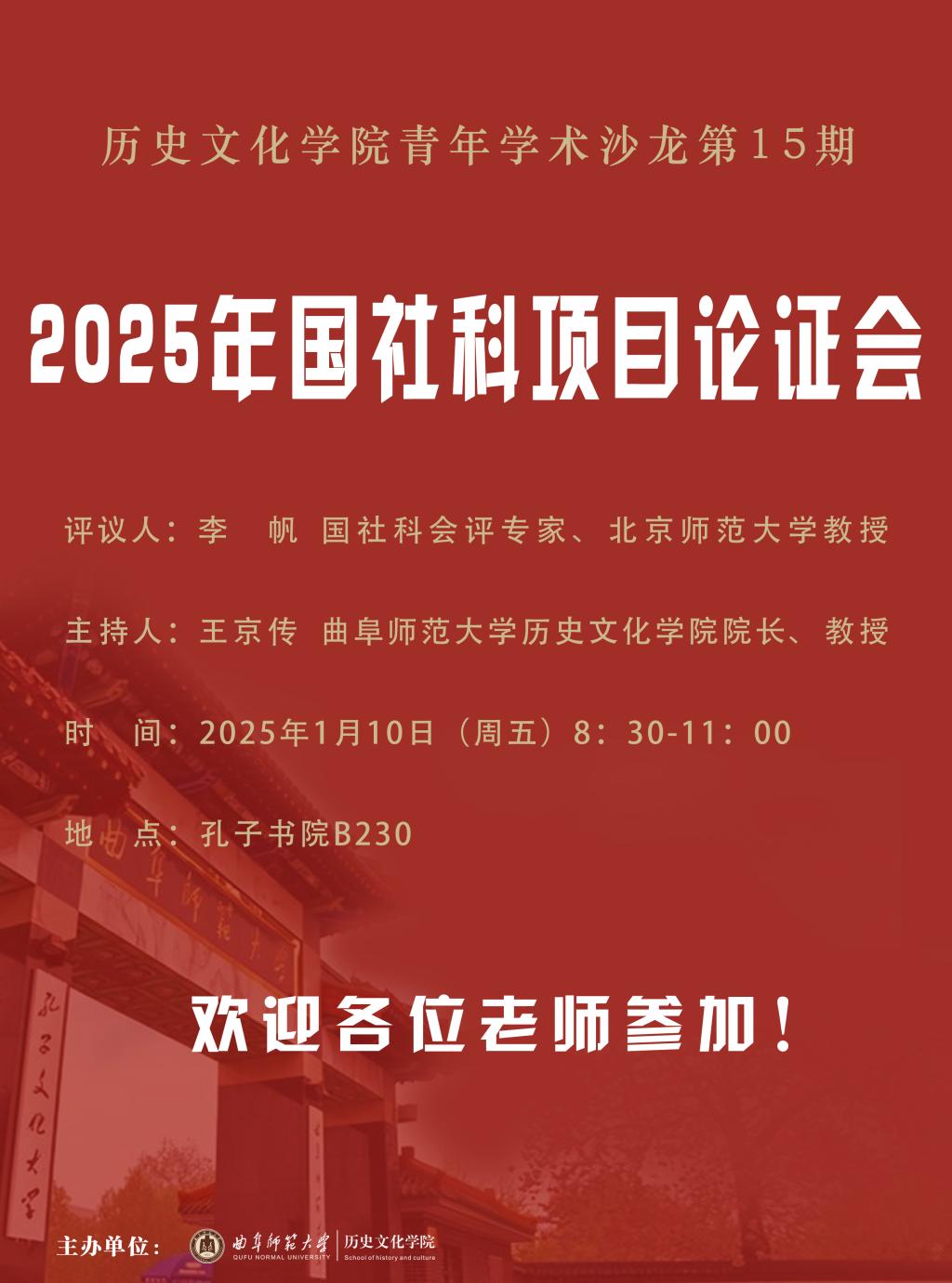 青年学术沙龙第15期预告:2025年国社科项目论证会