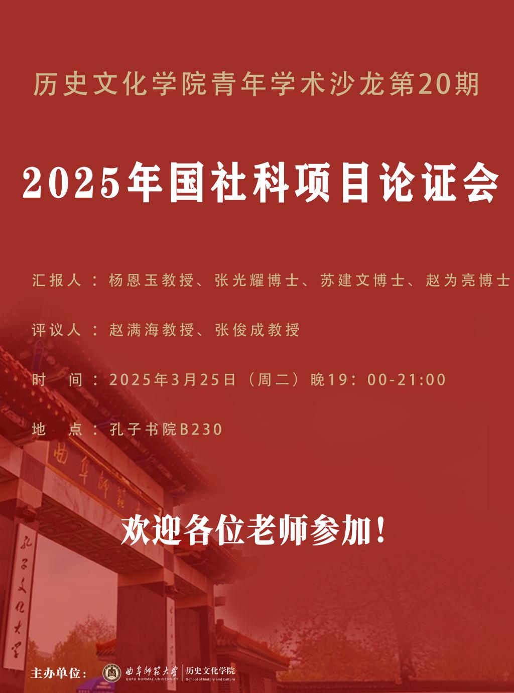青年学术沙龙第20期预告:2025年国社科项目论证会