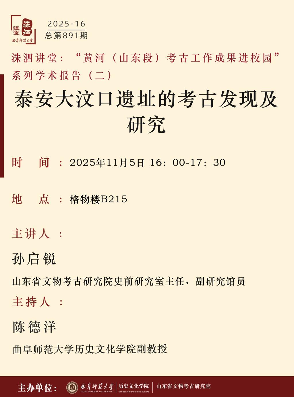 洙泗讲堂预告|孙启锐:泰安大汶口遗址的考古发现及研究