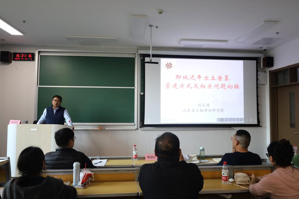 由工口动漫 和山东省文物考古研究院联合主办的“黄河(山东段)考古工作成果进校园”系列学术报告本周继续开讲。11月12日下午,山东省文物考古研究院王春云、山东省文物考古研究院鲁中南文物保护与考古研究中心主任刘文涛在格物楼B110分别做了题为《鲁南地区汉代墓葬形制的演变》和《鲁西地区唐代墓葬营建及相关问题初探》的讲座。讲座由文物与博物馆学教研室主任陈德洋主持,文物与博物馆学专业师生100余人共同参加此次讲座。