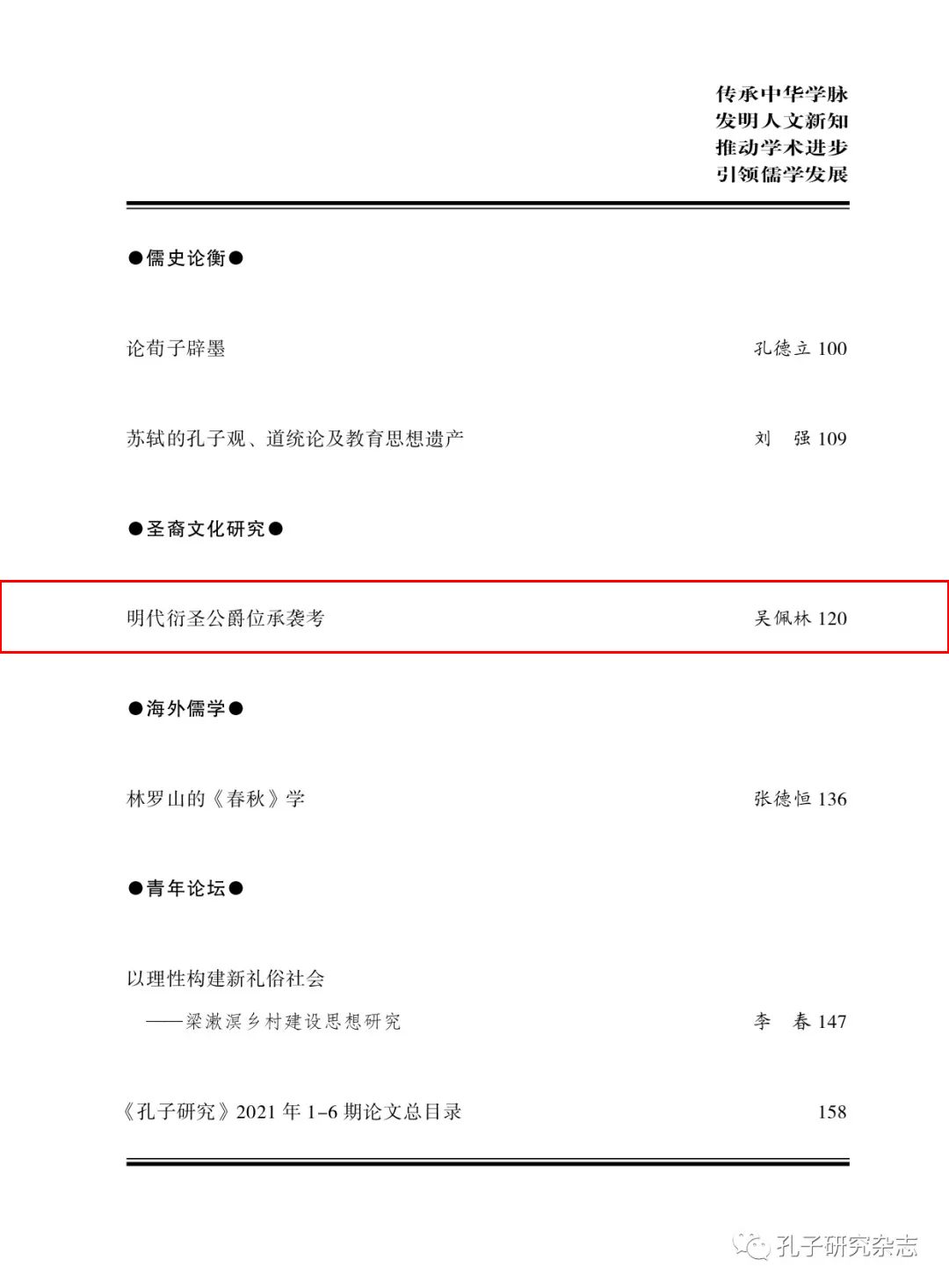 吴佩林:明代衍圣公爵位承袭考《孔子研究》第188期