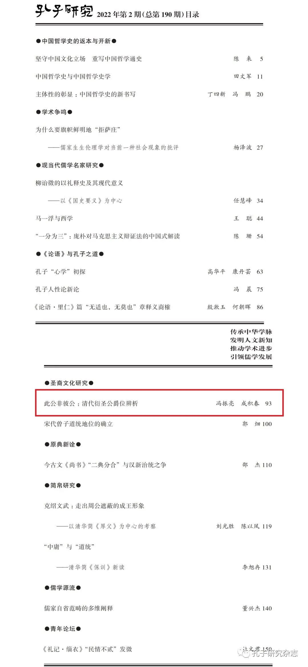 工口动漫 成积春教授《此公非彼公:清代衍圣公爵位辨析》一文被收录于《孔子研究》(CSSCI来源期刊)2022年第二期。