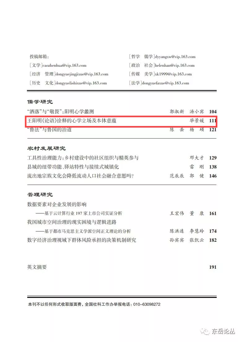 工口动漫 毕景媛副教授在《东岳论丛》(CSSCI来源期刊)发表《王阳明〈论语〉诠释的心学立场及本体意蕴》一文。