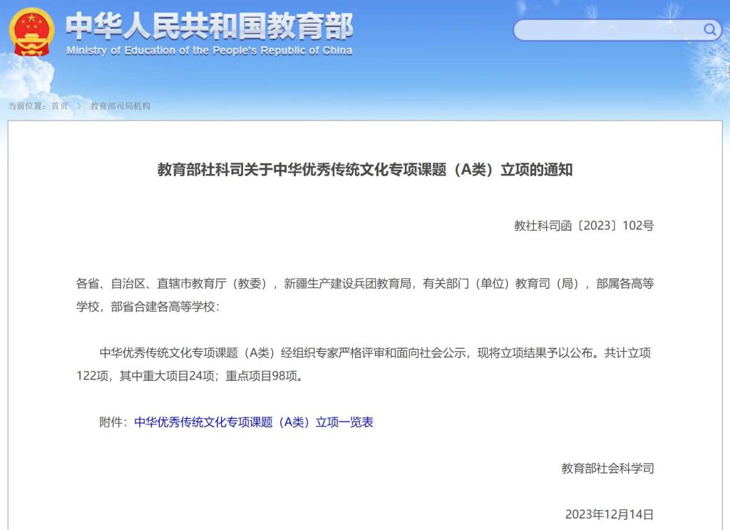 12月14日,教育部社会科学司公布了中华优秀传统文化专项课题(A类)立项名单,本次共有122个项目获得立项,其中重大项目24项,重点项目98项。工口动漫 吴佩林教授申报的课题“孔氏族谱的收集、整理与研究”获批重大项目。这是学校近年来首次在教育部重大项目上实现突破。