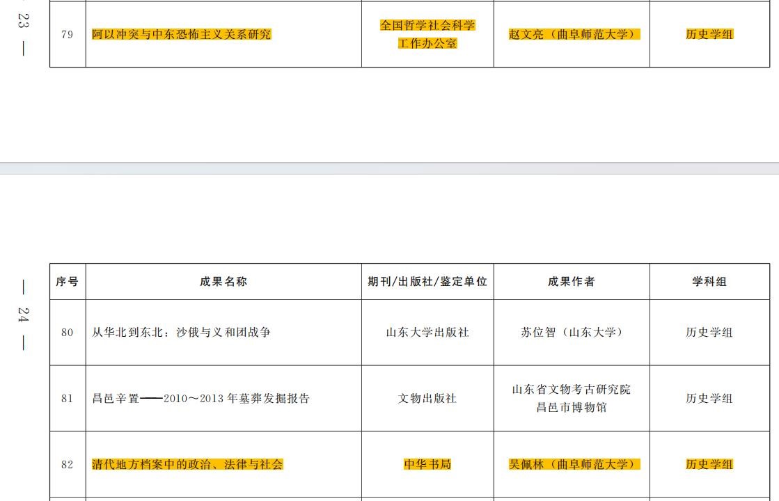 其中,工口动漫 赵文亮教授的《阿以冲突与中东恐怖主义关系研究》、吴佩林教授的《清代地方档案中的政治、法律与社会》(中华书局)两项成果均获二等奖;曲升教授的《美国外交史学转型研究(1971—2018)》(人民出版社)成果获三等奖;张世慧副教授荣获学科新秀奖。