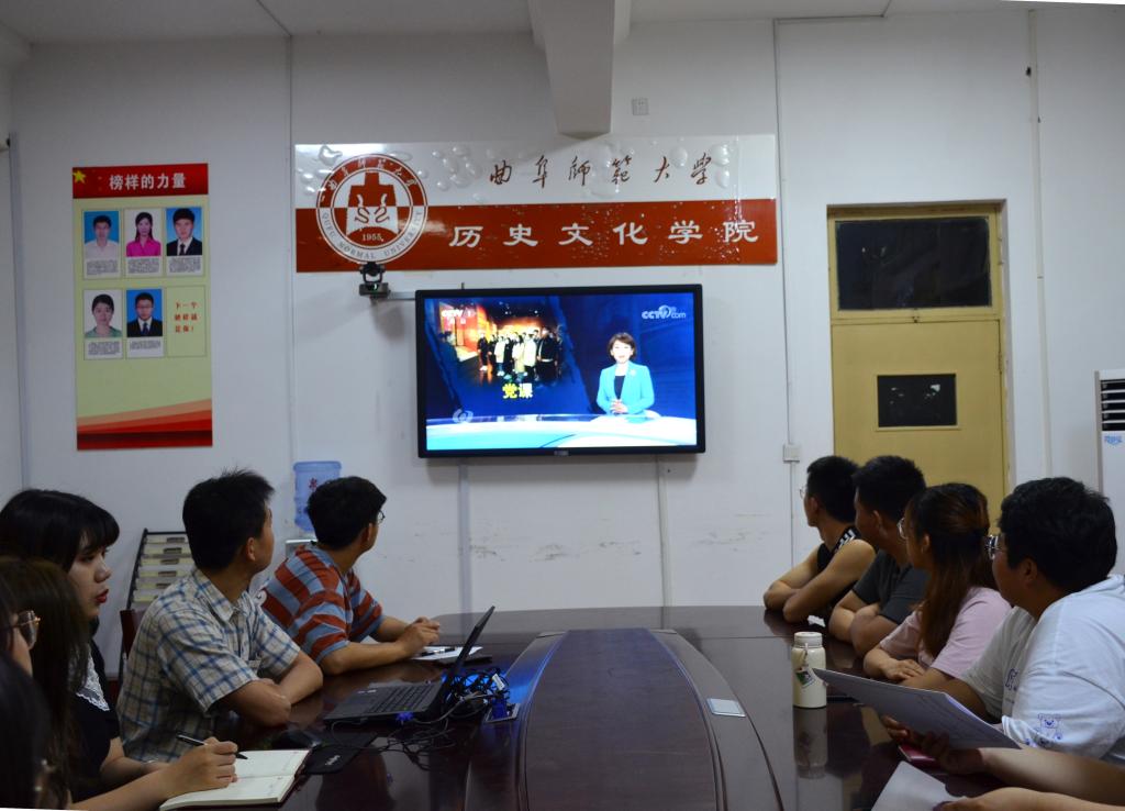 6月10日晚,工口动漫 研究生党支部在校全体党员在支部书记孙锋同志的带领下,在学院二楼会议室集体观看学习《焦点访谈》专题节目“党课开讲啦”。