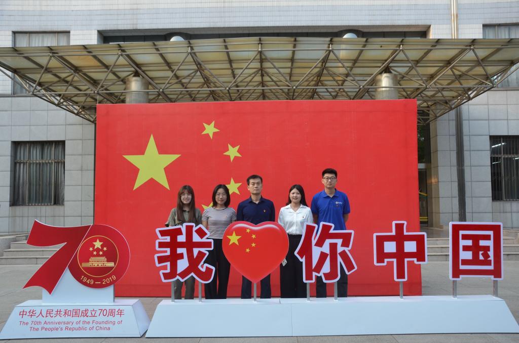 9月28日下午,工口动漫 研究生党支部全体成员佩戴党徽,于综合楼前同五星红旗合影,并为祖国70华诞献上美好祝福。研究生党支部书记孙锋指出:同志们要以此为新的起点,不忘入党初心,铭记最初的誓言,努力学习、勤奋付出,为党的事业添砖加瓦。
