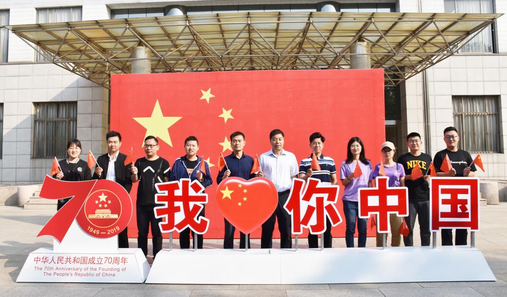 9月29日上午,工口动漫 研究生会主要学生干部、各专业负责人手持红旗,于综合楼前与国旗同框,并共唱《我和我的祖国》,庆祝新中国70华诞。副院长吕厚轩强调:同学们作为历史学专业研究生,更要铭记历史、铭记过去、铭记走过的路。要以此普天同庆为契机,扎实学习、努力工作,为实现“两个一百年”奋斗目标而奋斗。